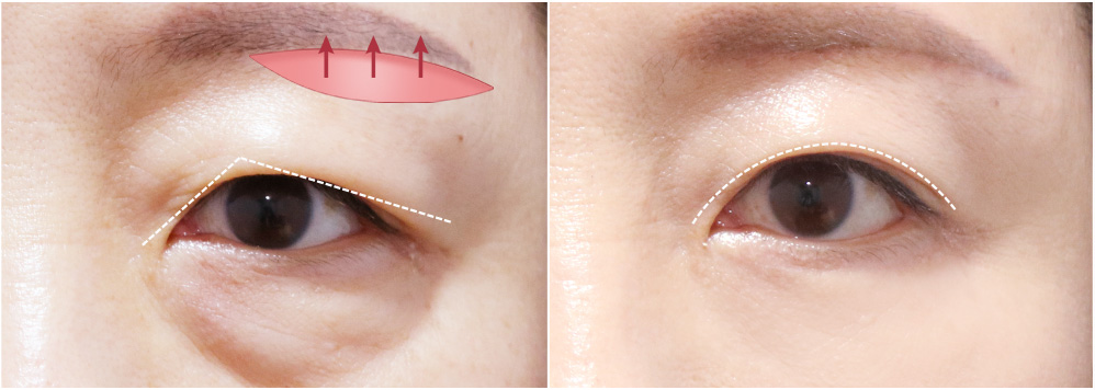 노화로 인해 눈썹 아래의 눈꺼풀이 처지면서 쌍꺼풀 라인을 덮거나 눈가 주름이 심해지는 경우