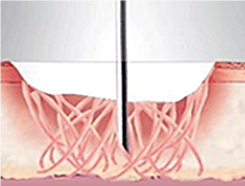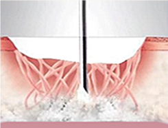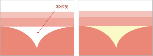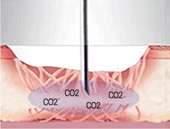 주입된 이산화탄소가 진피층을 박리하여 빈 공간(에어포켓)이 생기게 됩니다.