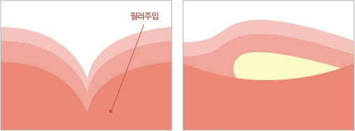 비어있는 공간에 필러나 보톡스를 주입하여 흉터나 깊은 주름 완화에 효과적입니다.