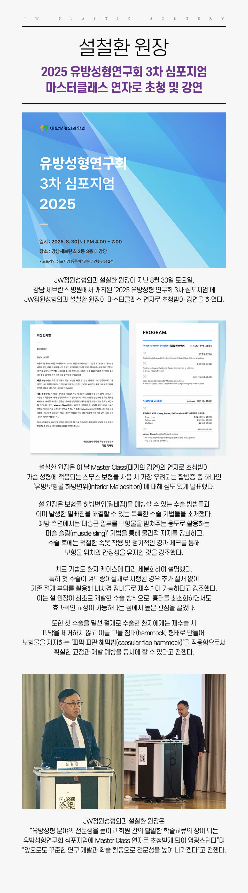 설철환 원장, 2025 유방성형연구회 3차 심포지엄 마스터 클래스 연자로 초청 강연