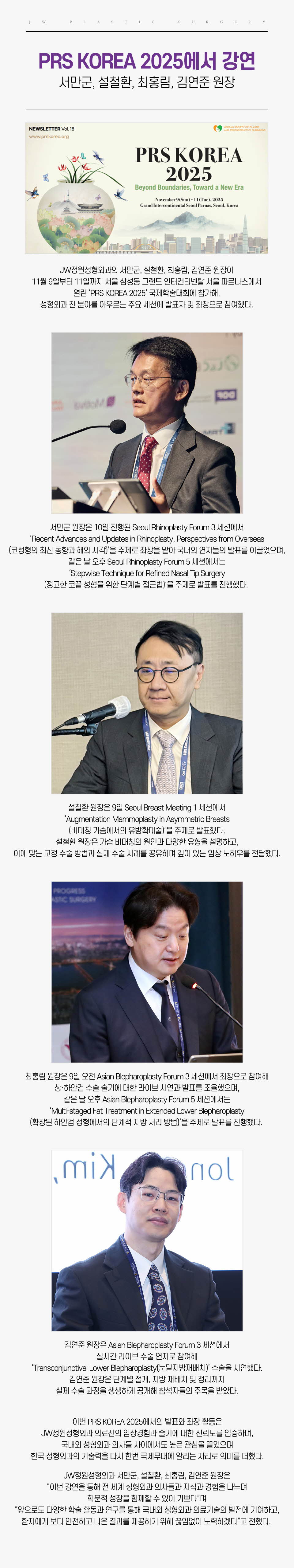 JW정원성형외과 4인 원장, PRS KOREA 2025 초청 강연 참여