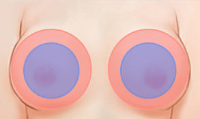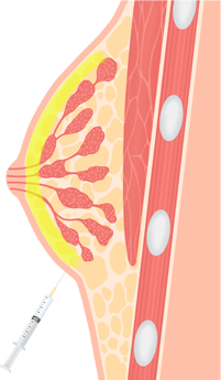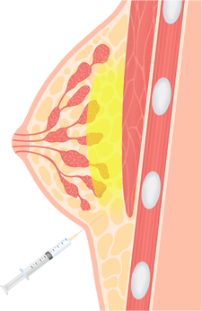 피하지방층(유선조직과 피부층 사이)에지방 주입