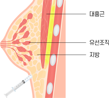 유선조직과대흉근 사이에지방 주입